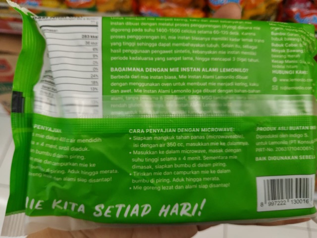 Mie lemonilo terbuat dari bahan alami tanpa bahan pengawet, msg dan pewarna apapun. Tepung yang digunakan adalah tepung mocaf (dari singkong) ukuran mie lemonilo lebih kecil dan pipih sedikit dan lebih keras dari mie pada umumnya. Iya jadi di highlight itu ada sharing resep makanan dan memang. Mi kering cap keluarga hebat ✨ bisa masak berbagai macam hidangan mie nih~ pesen sekarang, yuk! Lemonilo cocok bagi kamu pecinta berat mi, karena dibuat dari bahan alami, tanpa pengawet dan pewarna, bahkan tanpa lemak trans.